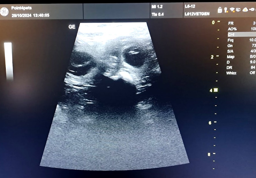 29.10. Sonogratické vyšetření nám potvrdilo, že Fidorka čeká štěňátka.