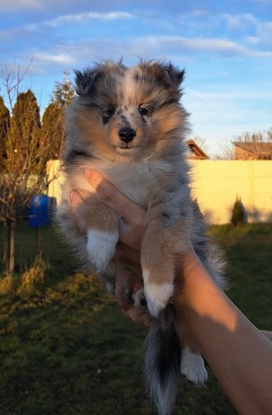 Kluk trikolor: 1,7 kg. Kluk blue merle: 1,8 kg.