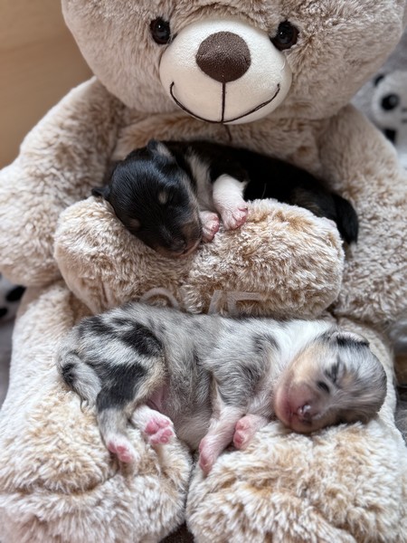 💥 V pondělí 9. 2. 2026 se Fidorce a Sanymu narodila štěňátka, dva chlapečci v barvě trikolor a blue merle. Porod proběhl přirozeně a v naprostém pořádku. Fidorka se o svá miminka stará s láskou a trpělivostí. Máme z nich obrovskou radost.