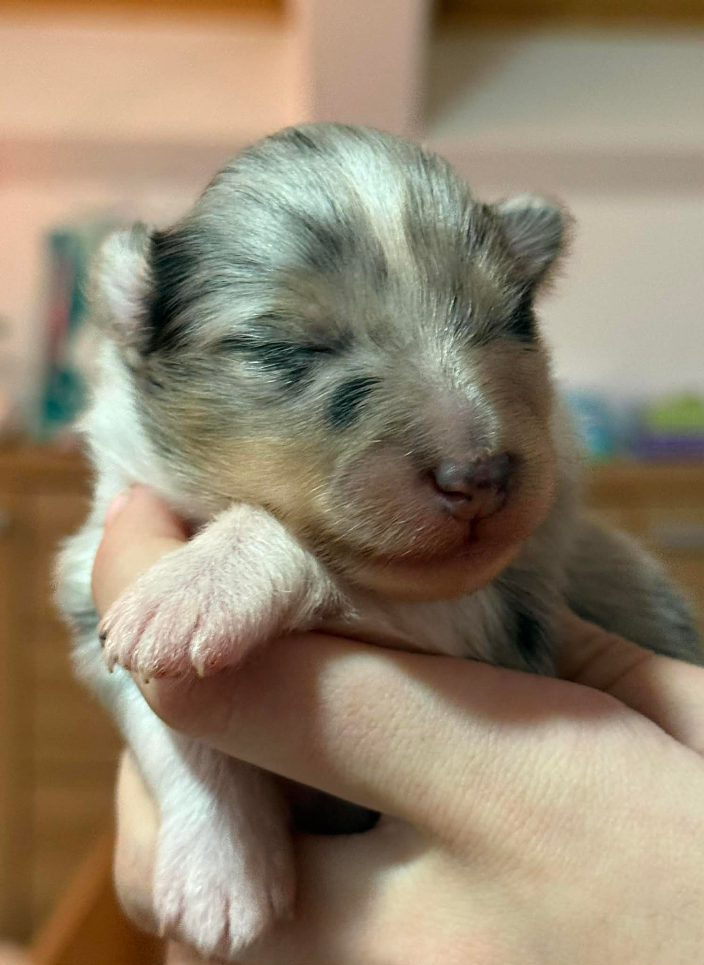 Chlapeček blue merle: porodní váha 430 g.